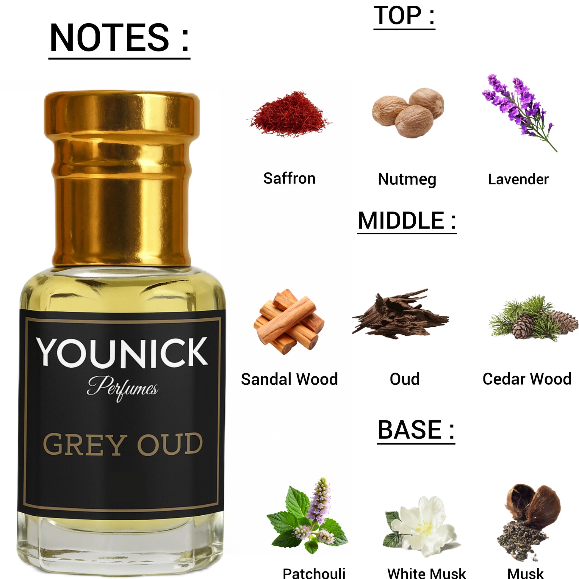 YOUNICK Grey Oud Attar - 6ml/12ml | A Luxurious Blend of Saffron, Oud & Musk